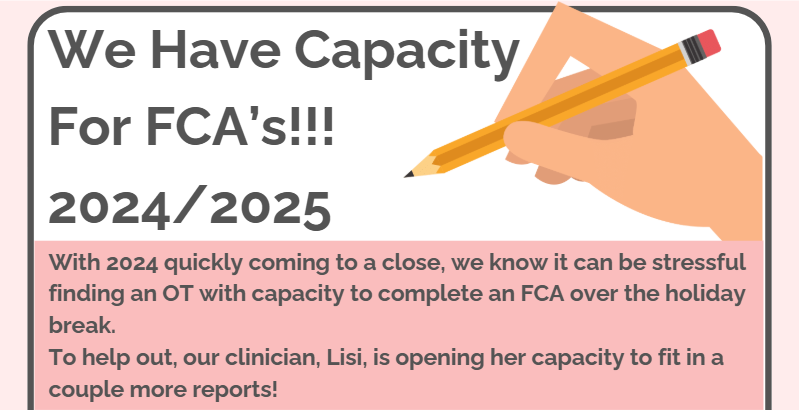 With 2024 quickly coming to a close, we know it can be stressful finding an OT with capacity to complete an FCA over the holiday break.