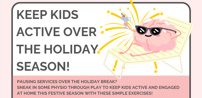 Pausing services over the holiday break? Sneak in some physio through play to keep kids active and engaged at home this festive season with these simple exercises!